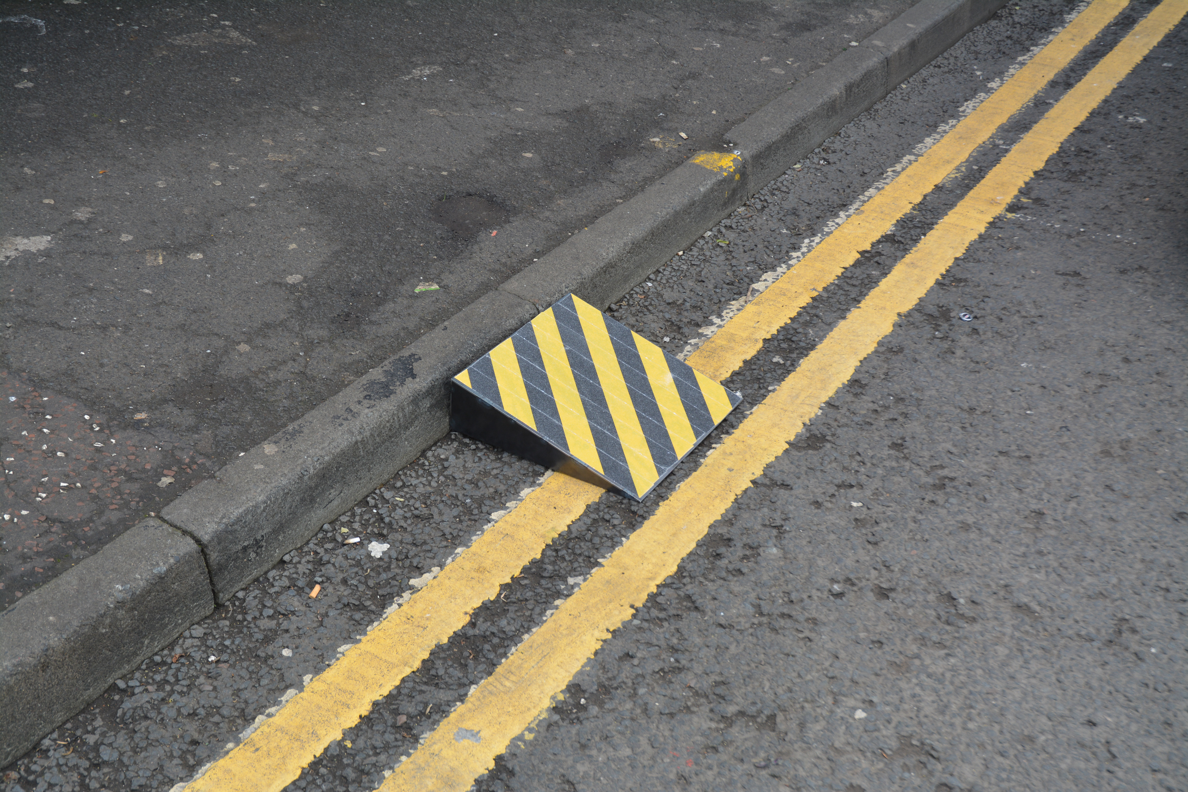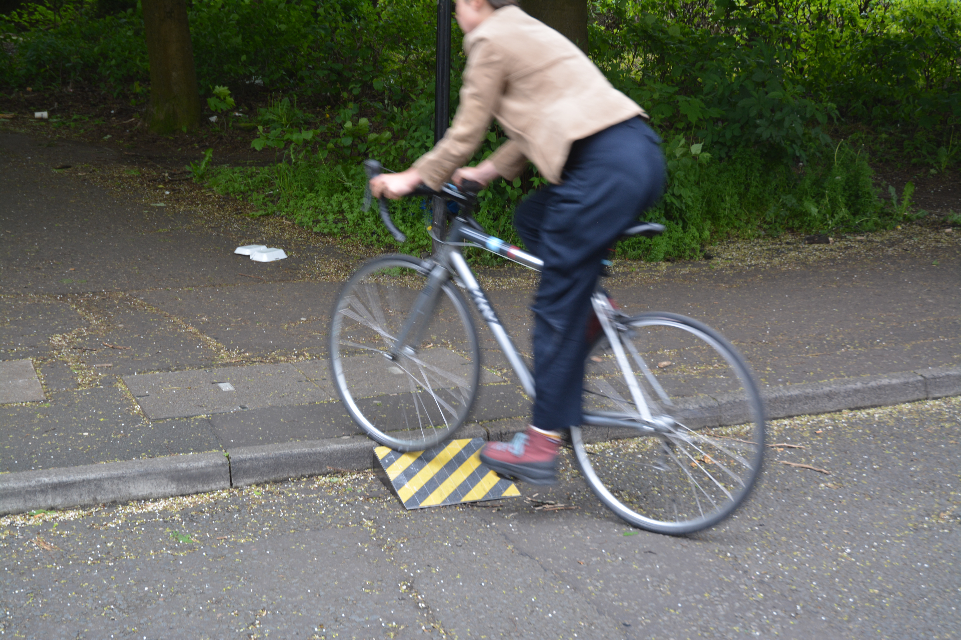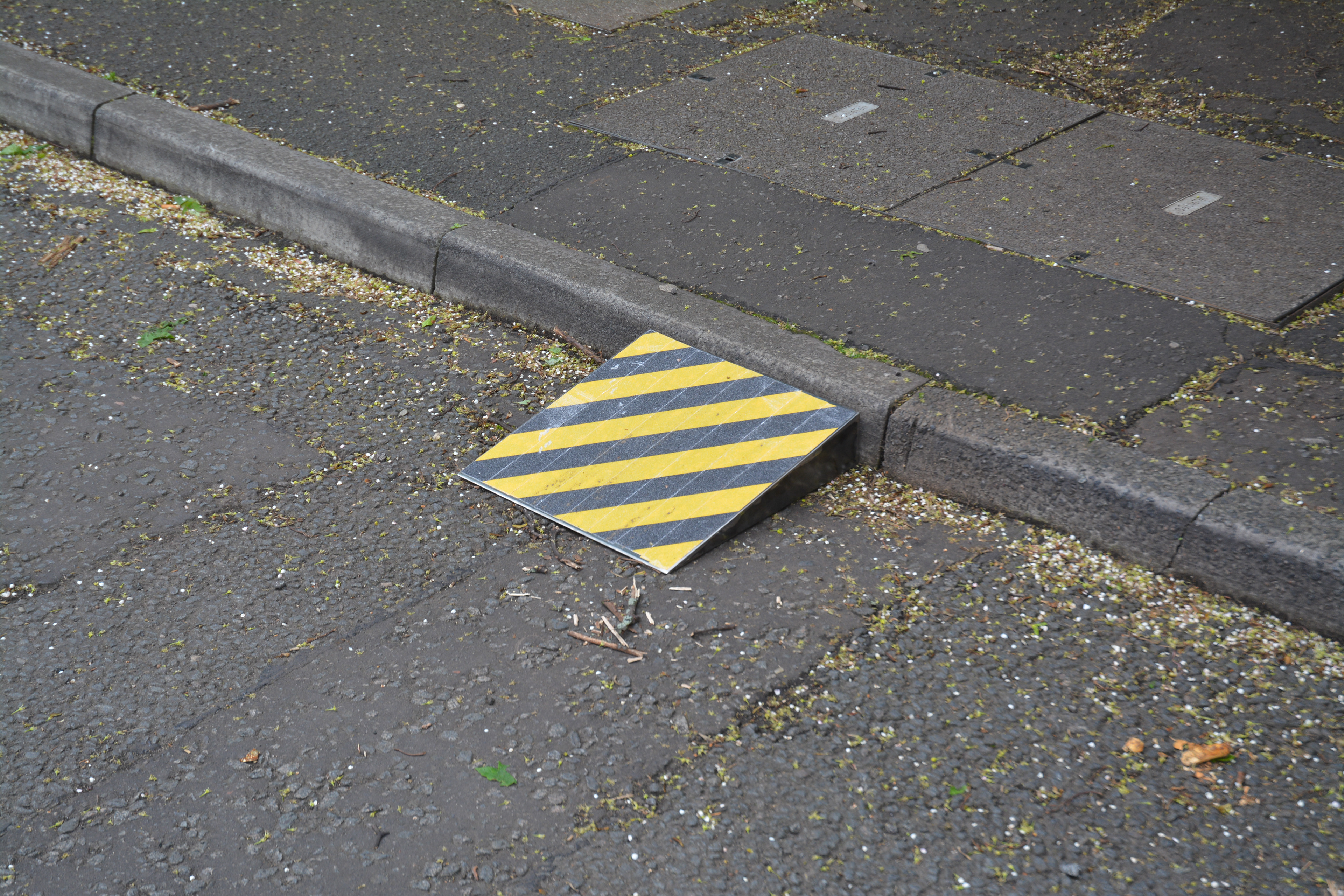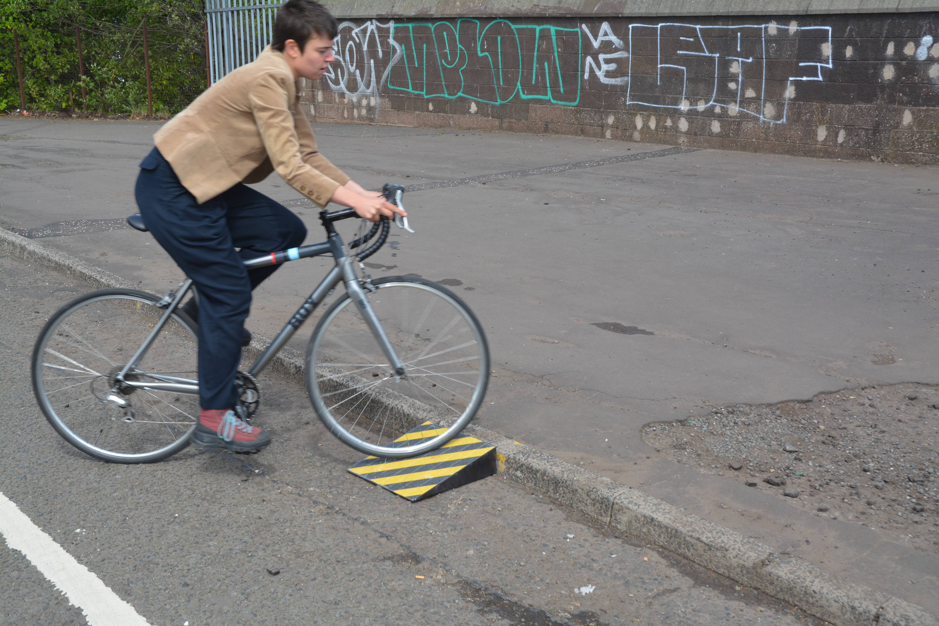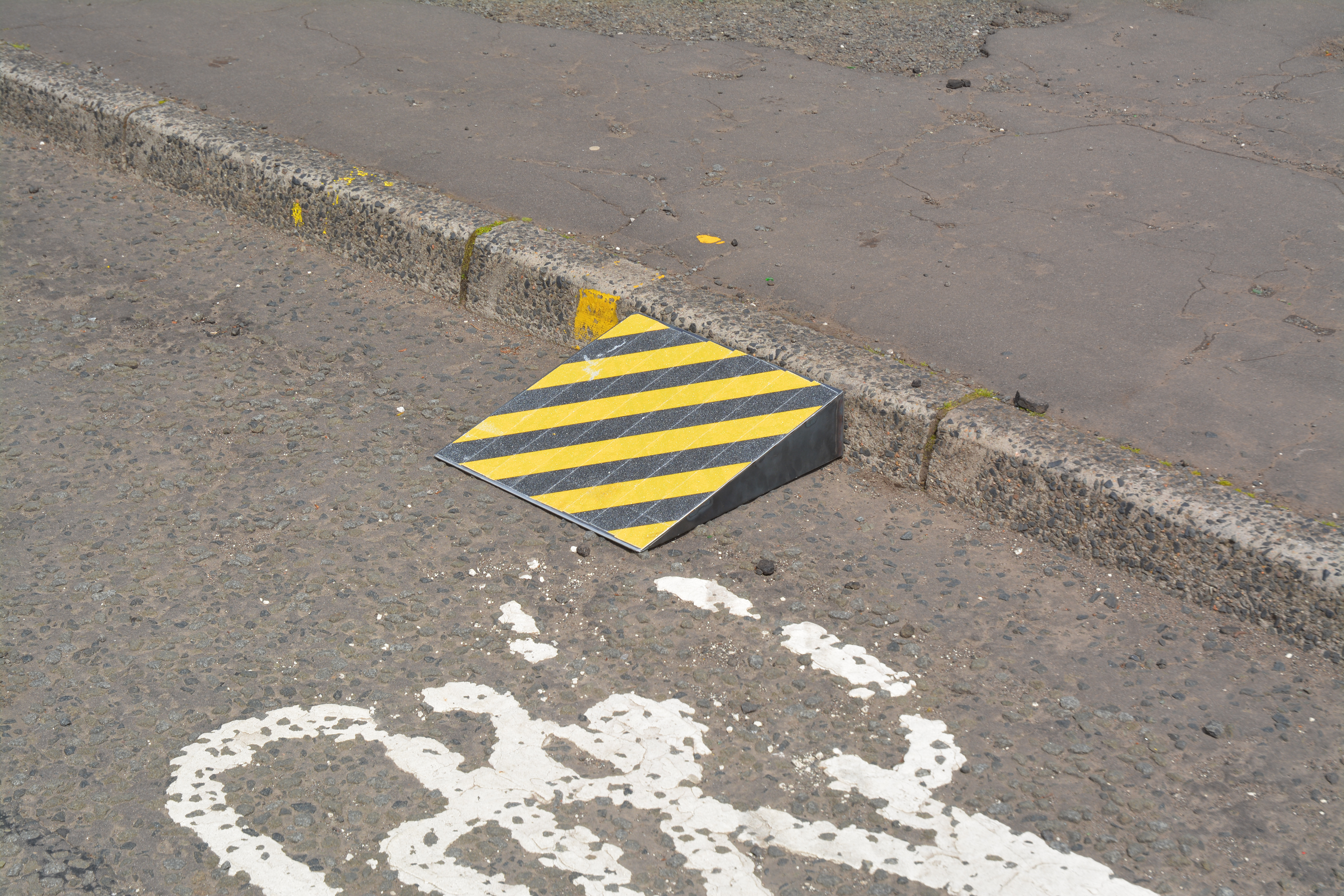 A series of welded bike ramps placed in locations around Glasgow, as requested by community members. These ramps are models used as supporting materialĀ for a Glasgow City Council application asking permission for permanent access ramps to be custom built and installed for communities around Glasgow.
