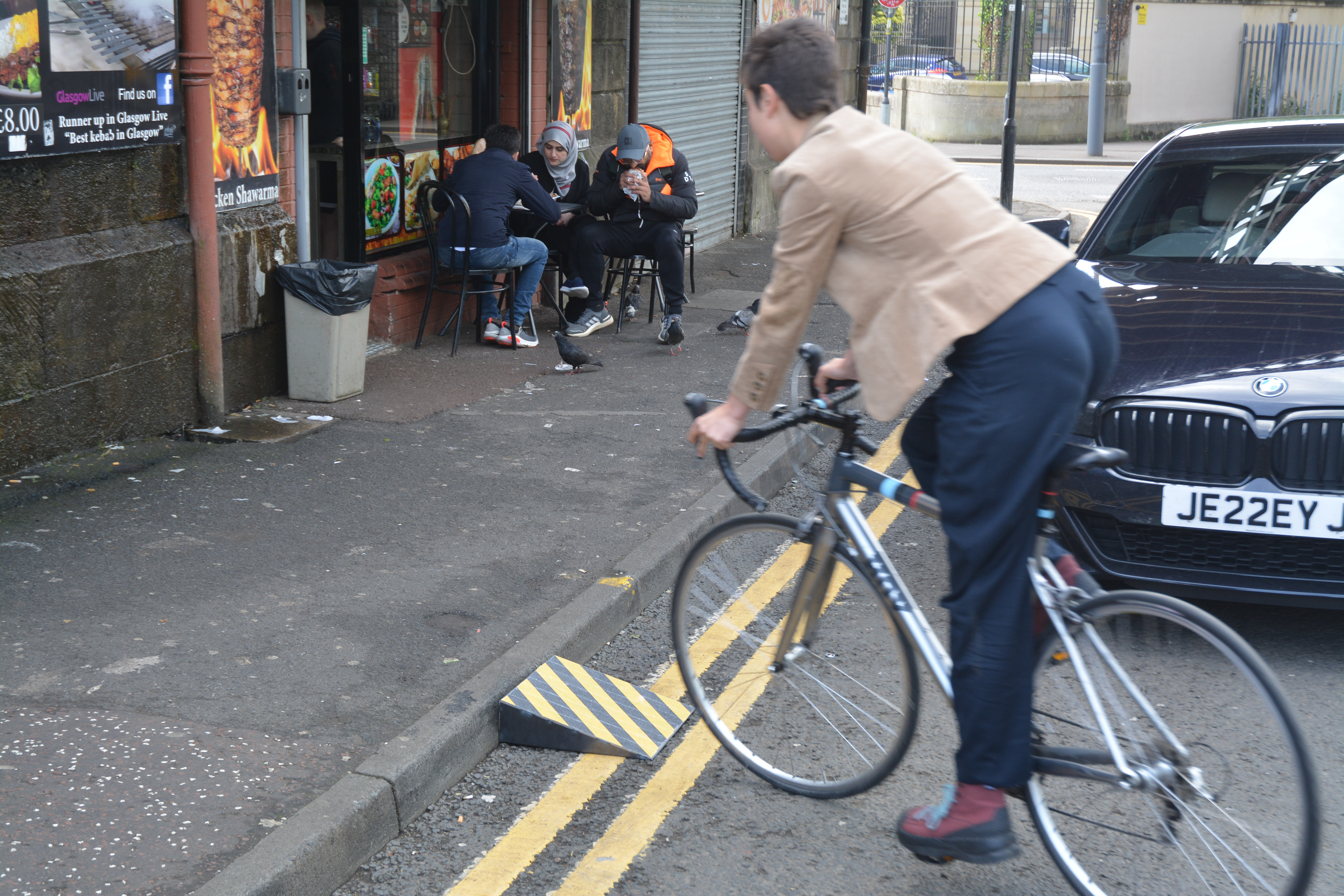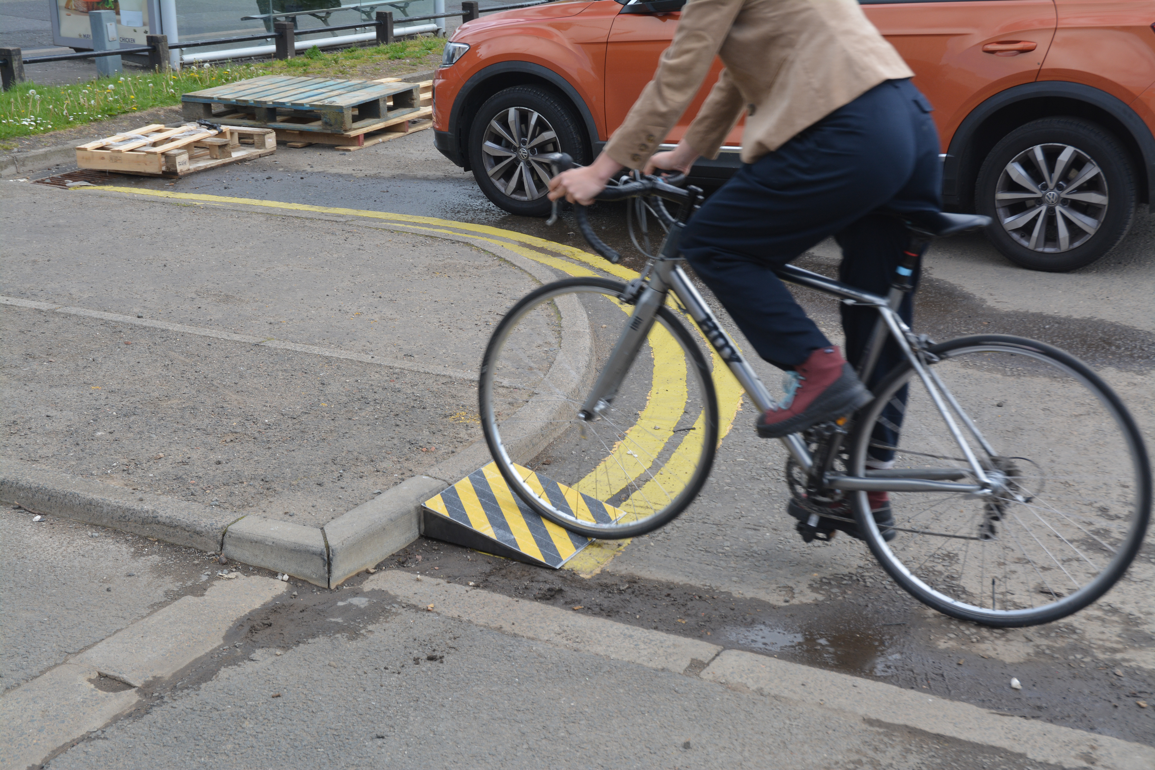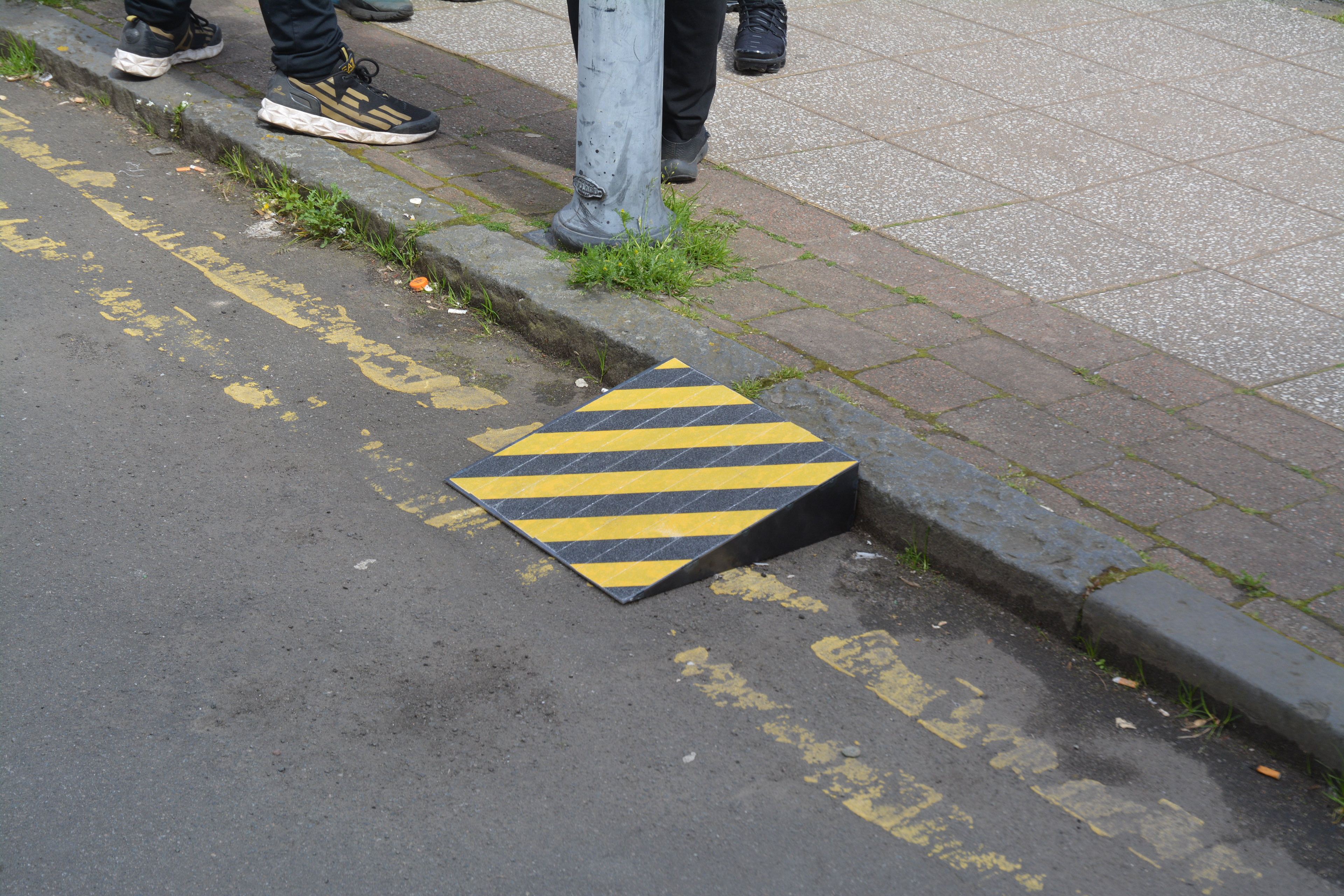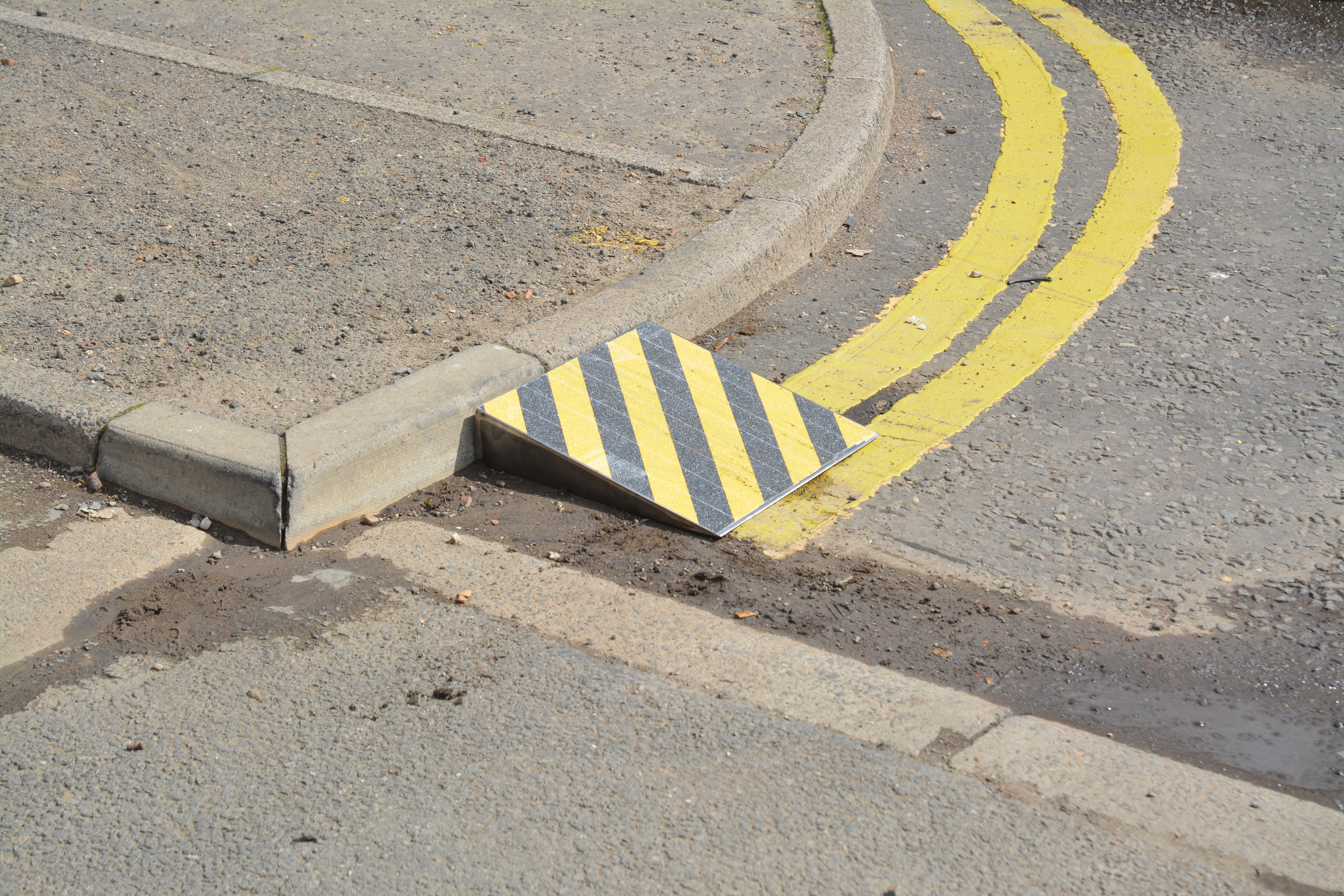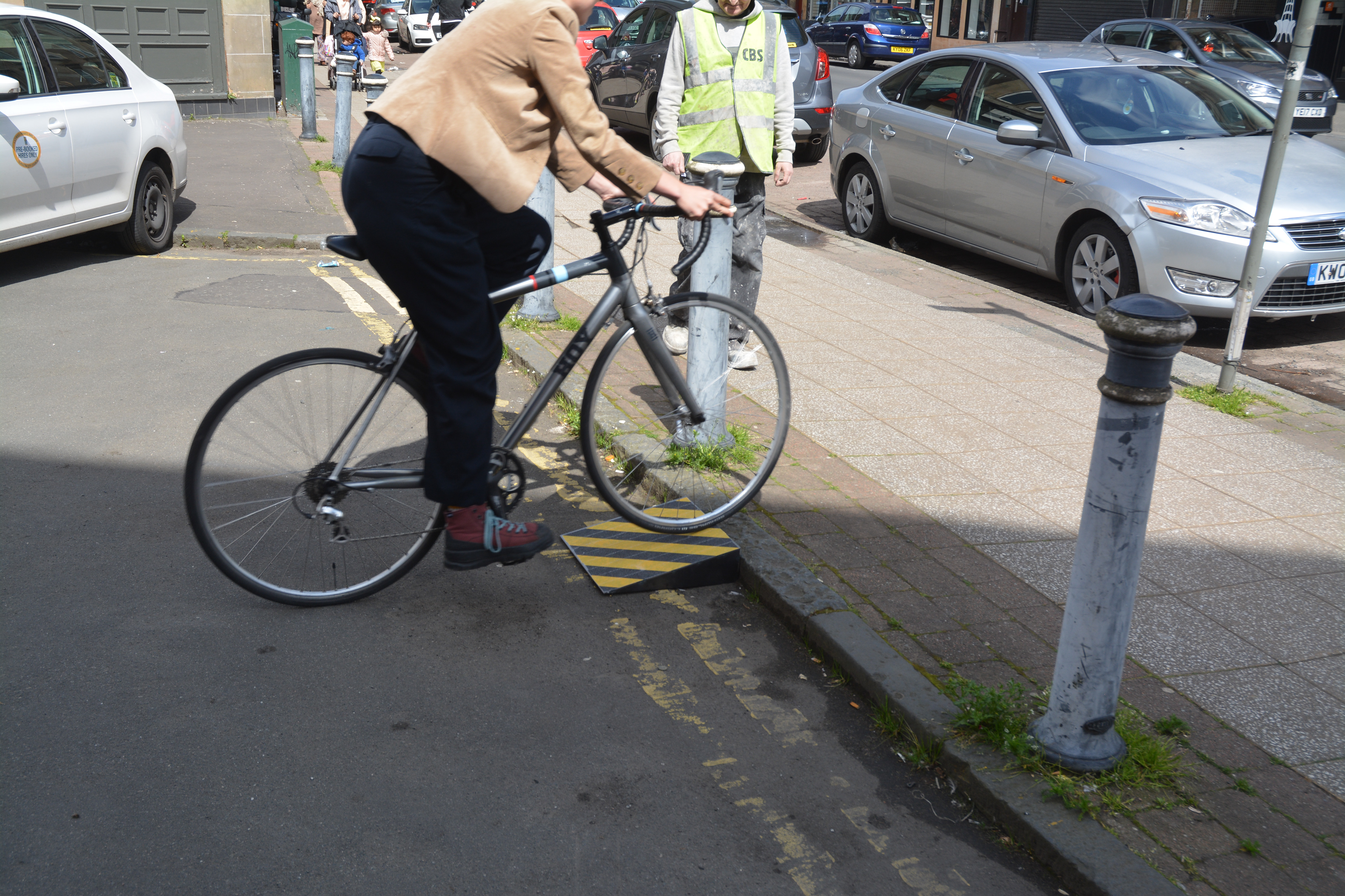 A series of welded bike ramps placed in locations around Glasgow, as requested by community members. These ramps are models used as supporting materialĀ for a Glasgow City Council application asking permission for permanent access ramps to be custom built and installed for communities around Glasgow.